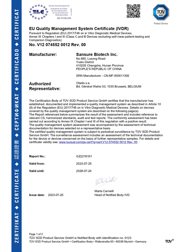 近日,好博体育生物自主研发的结核分枝杆菌核酸检测试剂盒(PCR-荧光探针法)获欧盟CE IVDR认证,这是公司呼吸道产品获得的首个Class C级别的准入证书,为公司结核产品的全球布局提供了有力支持,也为全球在2030年前消灭结核的目标贡献了“好博体育力量”。